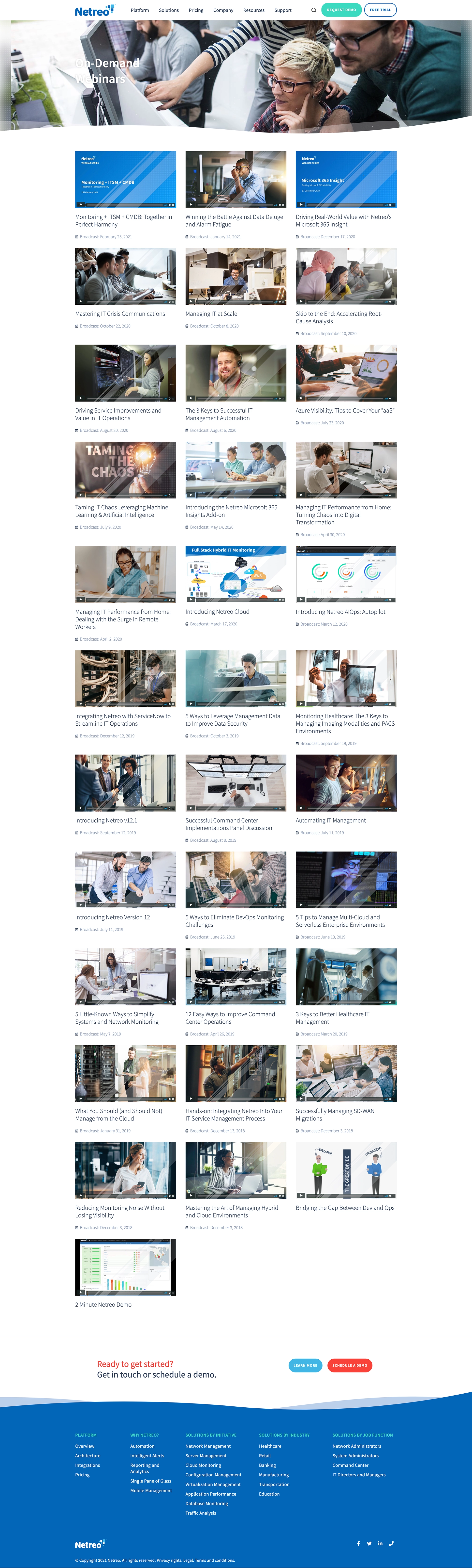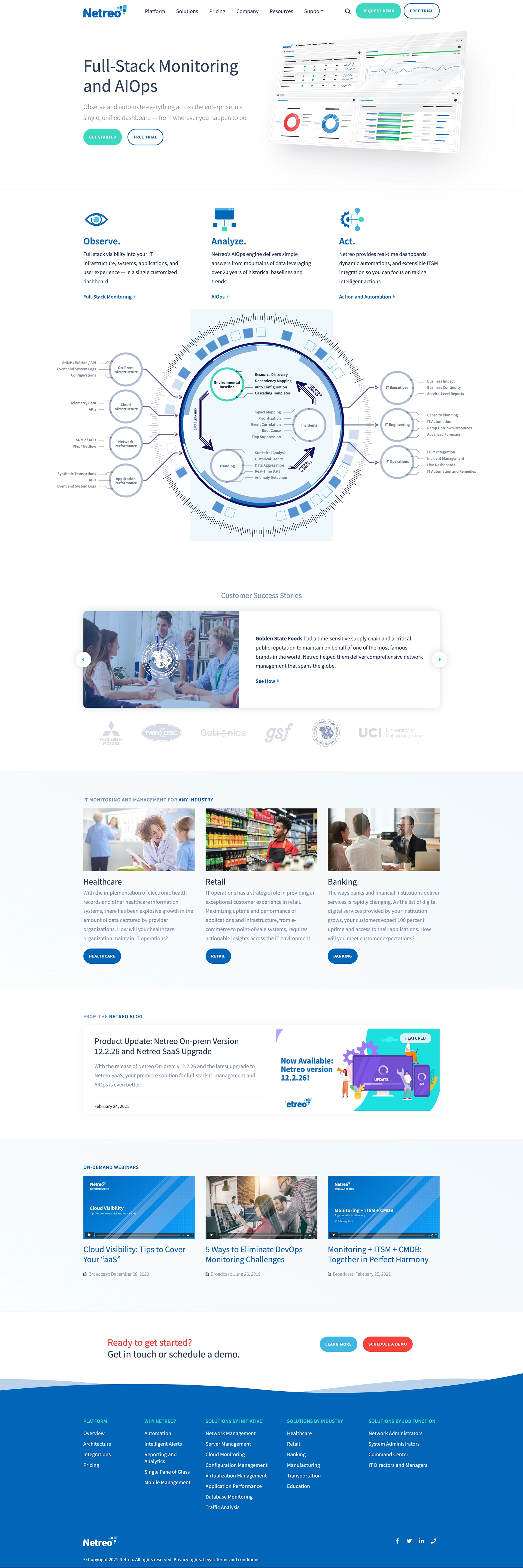 In the spring of 2019, I was approached by Netreo, a B2B software company headquartered in Bakersfield, California, to lead a comprehensive website initiative. At the time, the company was looking to modernize its identity to better reflect its growth, capabilities, and evolving position in the enterprise IT space. It was determined that redesigning the website from the ground up was the best avenue to complete this objective.